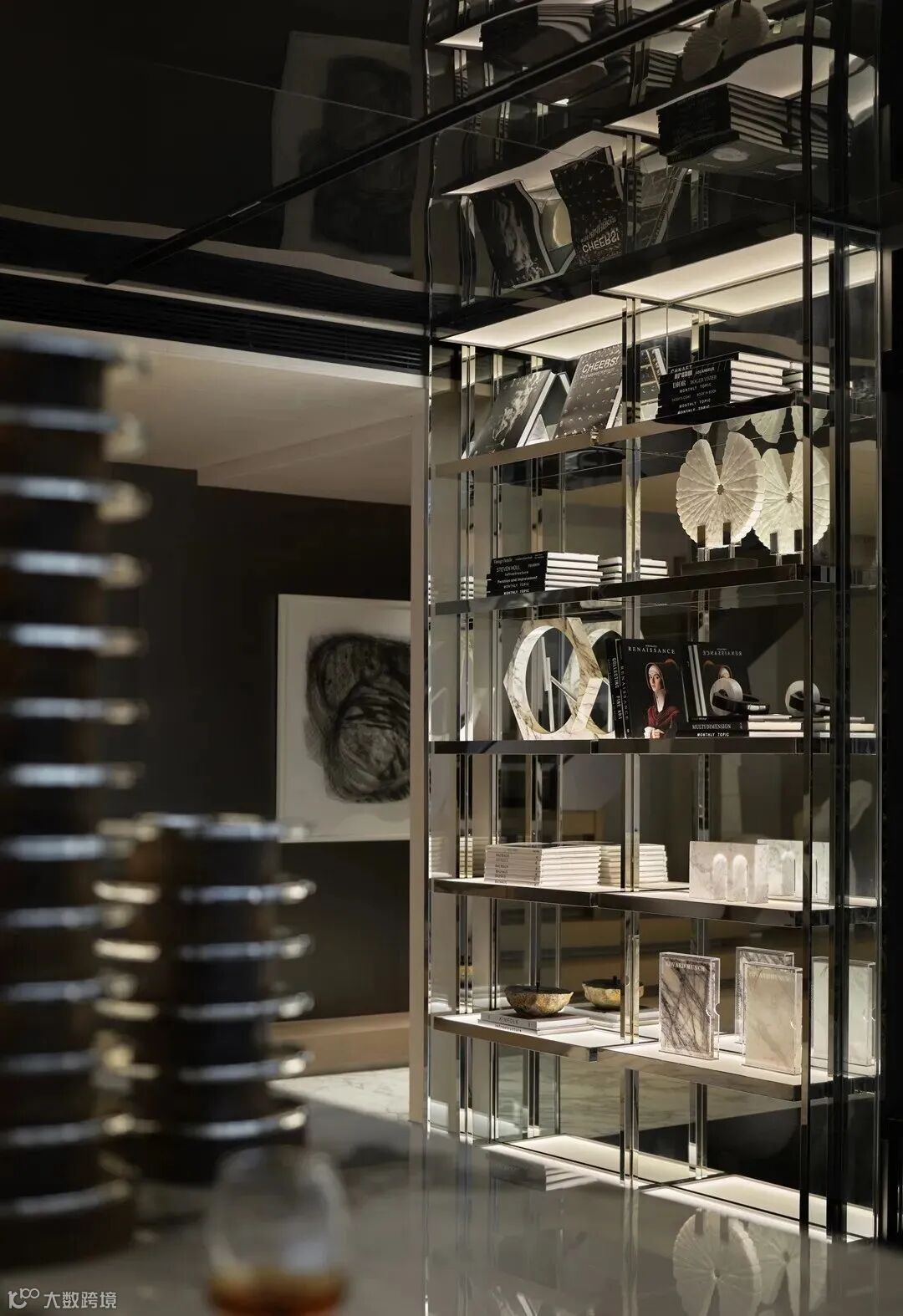 负一层的空间,是社交与享乐的空间。酒廊贯穿着吧台和休闲区。每一处细节的分寸,不仅赋予了室内空间的氛围,更营造出一室优雅静谧的美学空间。