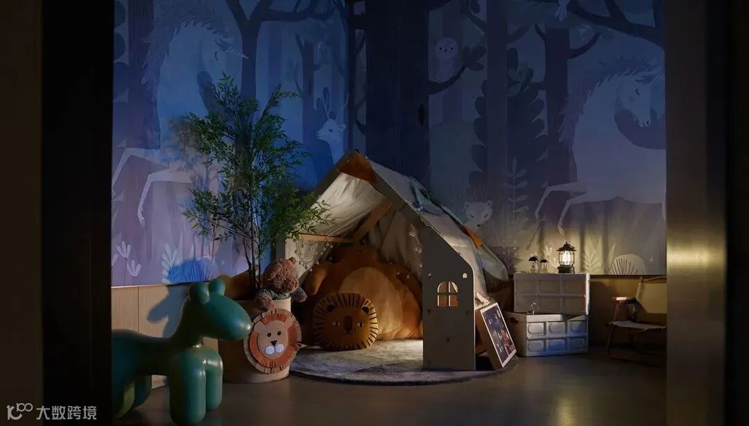 儿童房取一抹明净的亮黄,在阳光的催化下散发温暖,在角落设置了帐篷,对孩子来说,这是一个不被打扰的秘密基地。