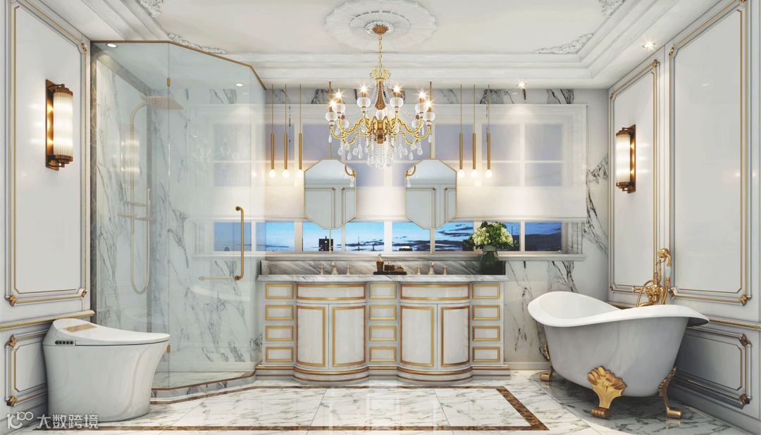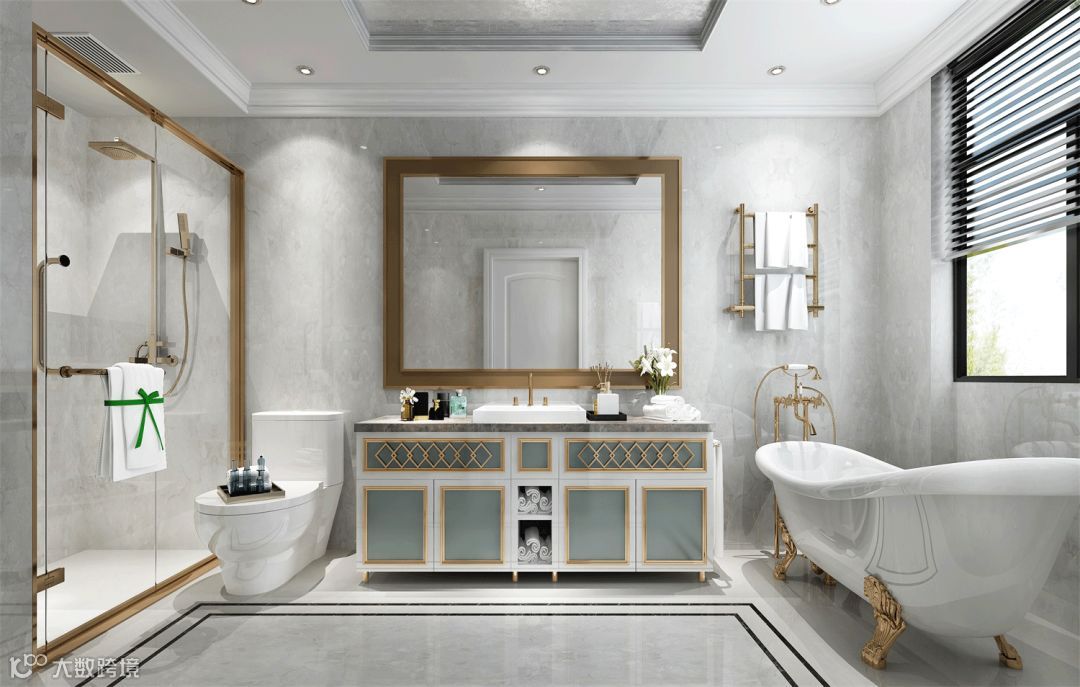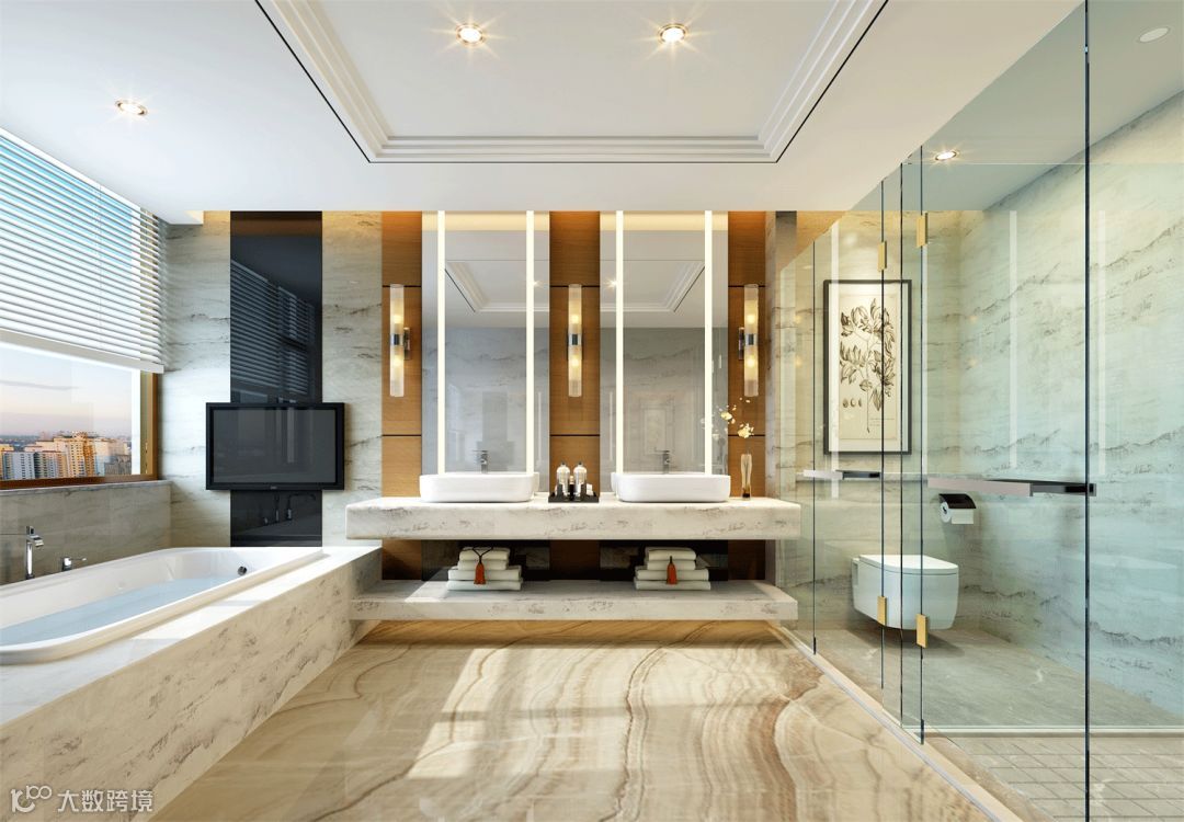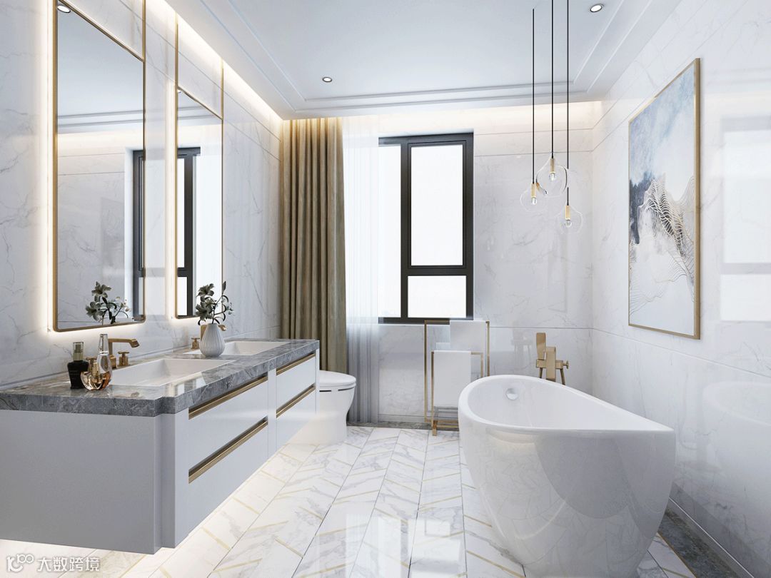 双台盆设计可以提高生活效率,两个人一起洗漱的画面也很温馨。当然,双台盆一般适合于卫生间空间比较大的情况。