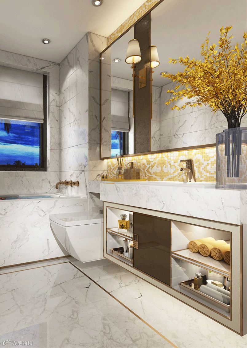 现在很多吊柜上下,或者镜子内置有一些LED灯带,烘托氛围,让空间更有层次。