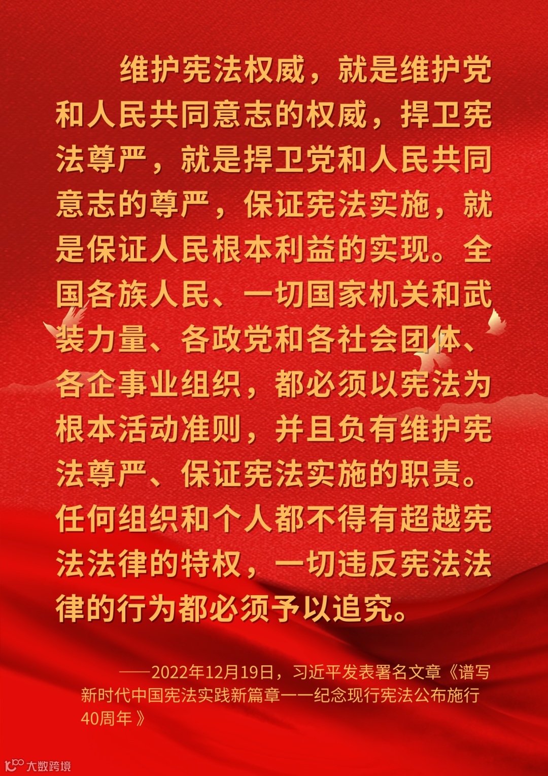 今年12月4日是第十个国家宪法日,我们也迎来了第六个“宪法宣传周”。2023年全国“宪法宣传周”活动的主题是“大力弘扬宪法精神,建设社会主义法治文化”。在宪法宣传周期间,广业环保集团将通过公众号推送带领大家深入了解我国宪法,让宪法家喻户晓、深入人心。今天的内容为:【宪法至上,维护宪法权威和尊严】。
