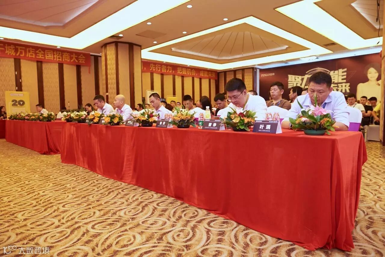 正式招商之前,PINGO国际托美尔事业部总监尹成军、美星事业部总监冷亚军、春满人间事业部总监叶瑀、城市合伙人事业部总监文小花、艺可易装营销管理中心总监杨华在台上介绍各自品牌的加盟优势。