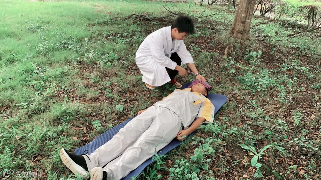 厂长罗国标向大家详细讲解了中暑的定义、病因、表现、急救方法和预防措施。随后进行现场应急演练,现场模拟作业人员顶着烈日在氧化沟捞漂和清理杂草时发生突感头昏头痛、口渴多汗、全身疲乏无力、脸色发白等异常现象,晕倒在作业现场。根据其症状初步判定,可能是发生了高温中暑,现场其他作业人员将其迅速转移到附近的大树底下阴凉处,垫高头部,解开衣扣松开衣服,以尽快散热,并用凉湿毛巾冷敷中暑人员头部,将风油精涂至太阳穴,尽快冷却体温、及时恢复清醒状态。最终,“中暑”人员及时得到救治,中暑症状消除。