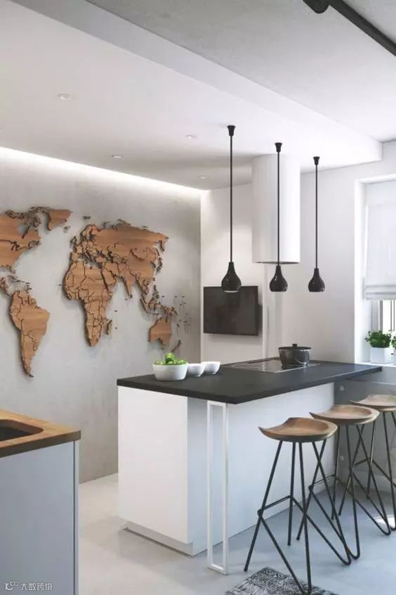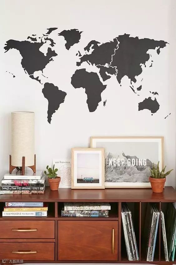 墙上挂幅地图,比挂什么装饰画都好看,它不仅能起到装饰效果,更隐形地空间延伸效果,给人以广阔的想象空间。