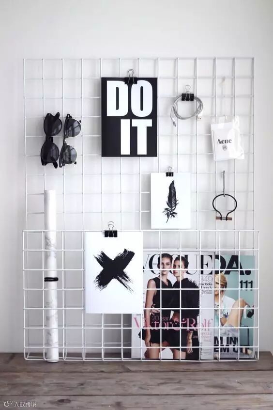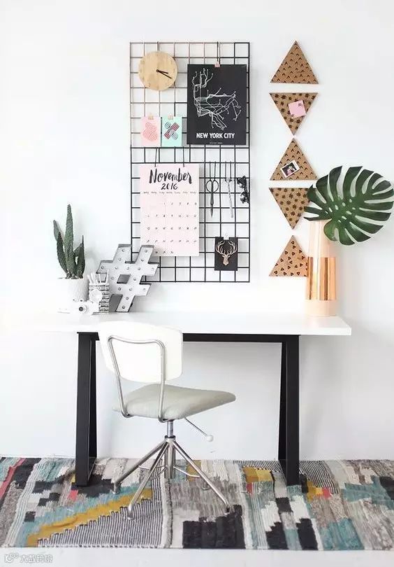 你的书房要是少了铁艺网格,简直就是浪费了一面墙,有它做桌面收纳比买个柜子还管用,关键还节省空间。