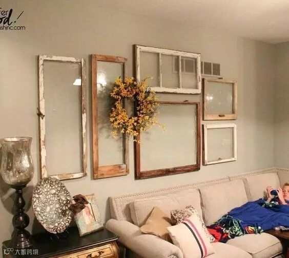 你把旧窗框当废品扔掉,可有人却把他们挂上了墙。既复古又文艺,一秒提升客厅格调。