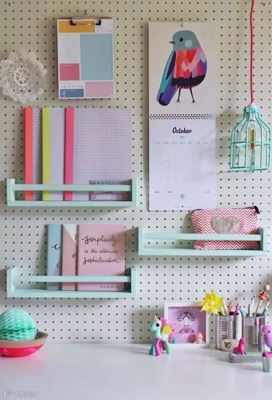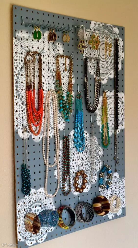 女孩子们常用的化妆品、项链首饰、小工具等杂物,堆在柜子抽屉里多不方便使用,用上洞洞板就不用愁啦,强迫症患者也能瞬间被治愈。