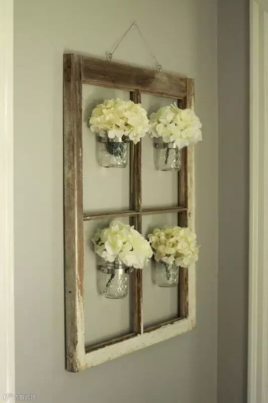 窗框和花瓶的组合,真是绝佳的创意,用旧物改造一下就能让墙面生动起来!