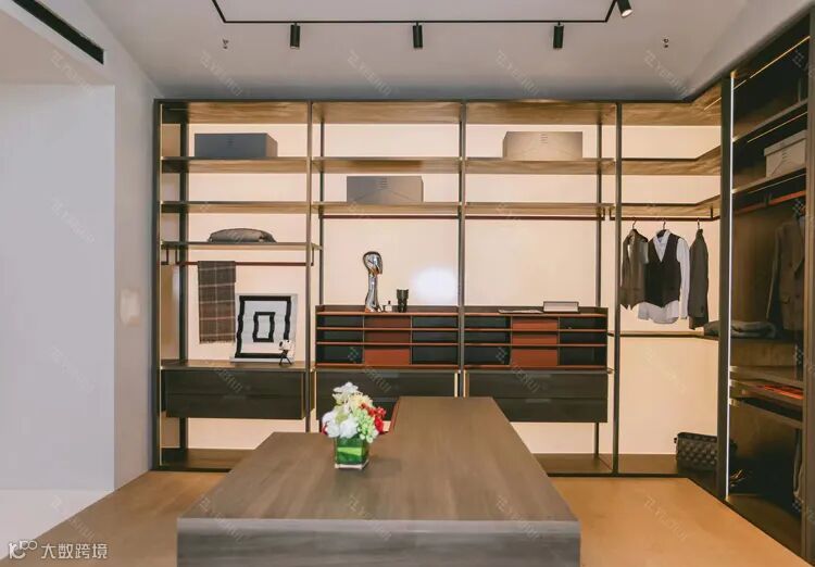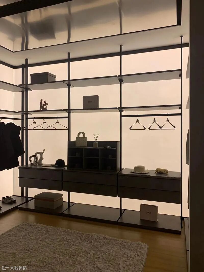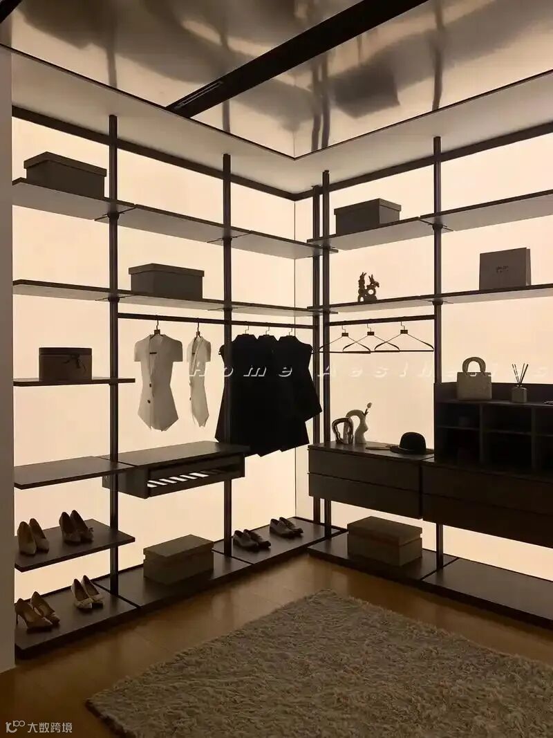✨ 高阶玩法:在地台四周嵌入发光背板,步入衣帽间时自动亮起,仪式感拉满
