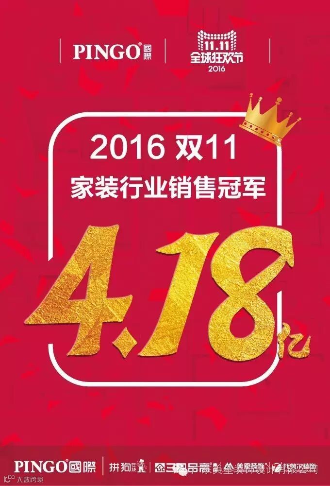 深厚的实力,加上敏锐应对趋势变化的创新,最终使PINGO国际成为了“双十一”最大的黑马。事实上,如果从PINGO国际自创世至今的发展历程来看,“双十一”夺冠一点都不偶然。从5月份入驻天猫开始,运营两个月销售额即突破2亿元。7月、8月连续占据天猫家装销售龙头位置。9月份启动全民整装节,至今已覆盖366个城市,惠及500万准装修人群,全国录得超6亿元的订单额……这个根基深厚、模式领先的品牌,一路都在腾飞。业内专家预测称,按照目前的发展速度,2016年全年PINGO国际业务营收将达40多亿元的规模,将成为互联网家装品牌的创业新样本。