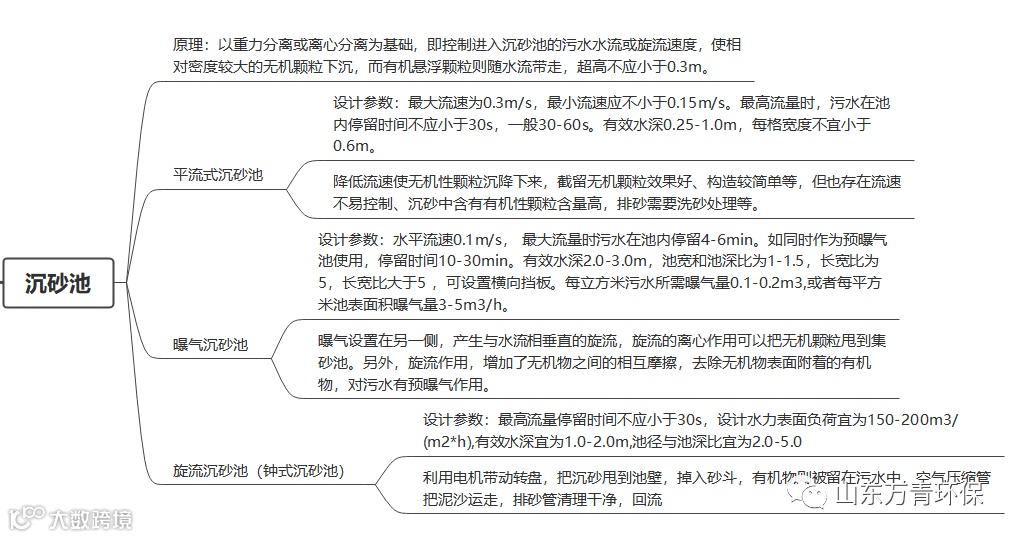 沉砂池一般设置在提升设备和处理设备之前,以保护水泵和管道免受磨损,防止后续水构筑物的堵塞和污泥处理构筑物容积的缩小,同时可以减少活性污泥中无机物的成分,提高活性污泥的活性。