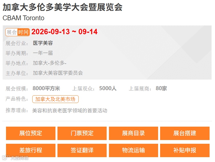[展位预定、门票预定、展商目录、展台搭建、差旅行程、签证、翻译、物流运输、补贴申报]