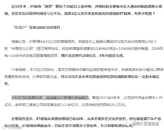 这就是我看到最搞笑的?新海这几年并购谁了?投资个光伏项目和并购有个毛线的关系
