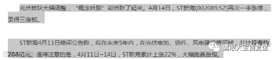 大幅跑赢上证指数,看3天?按记者你的逻辑这三天大盘跌的,所有的涨停过的股票都是大幅跑赢,是不是这样?那你看过ST板块指数没有,从去年4月到今年4月,ST新海跑输了多少?你是否恶意诱导股民这股票涨多了?