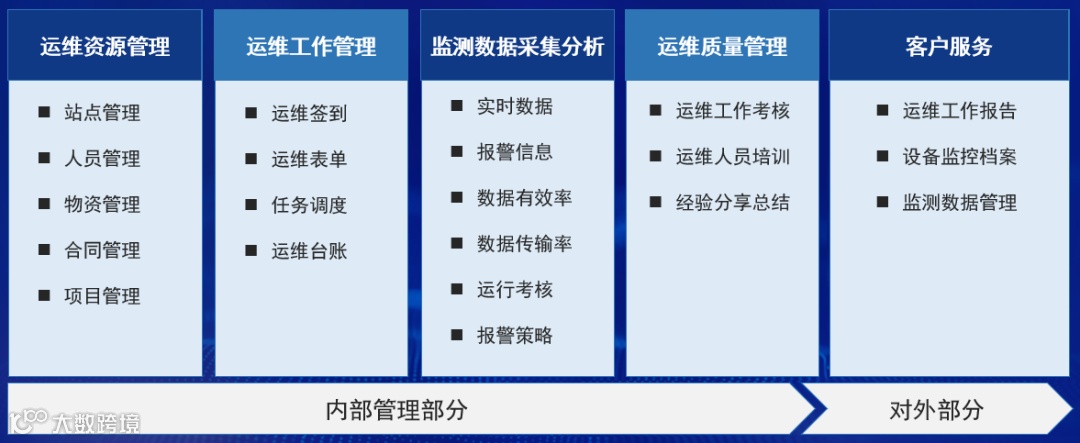 梳理汇总运维站点状态、数据、运维工作计划、记录、物资使用申领记录等运维信息,为运维人员提供一站式的工作处理服务,为运维管理提供实时的运维工作开展情况视图。