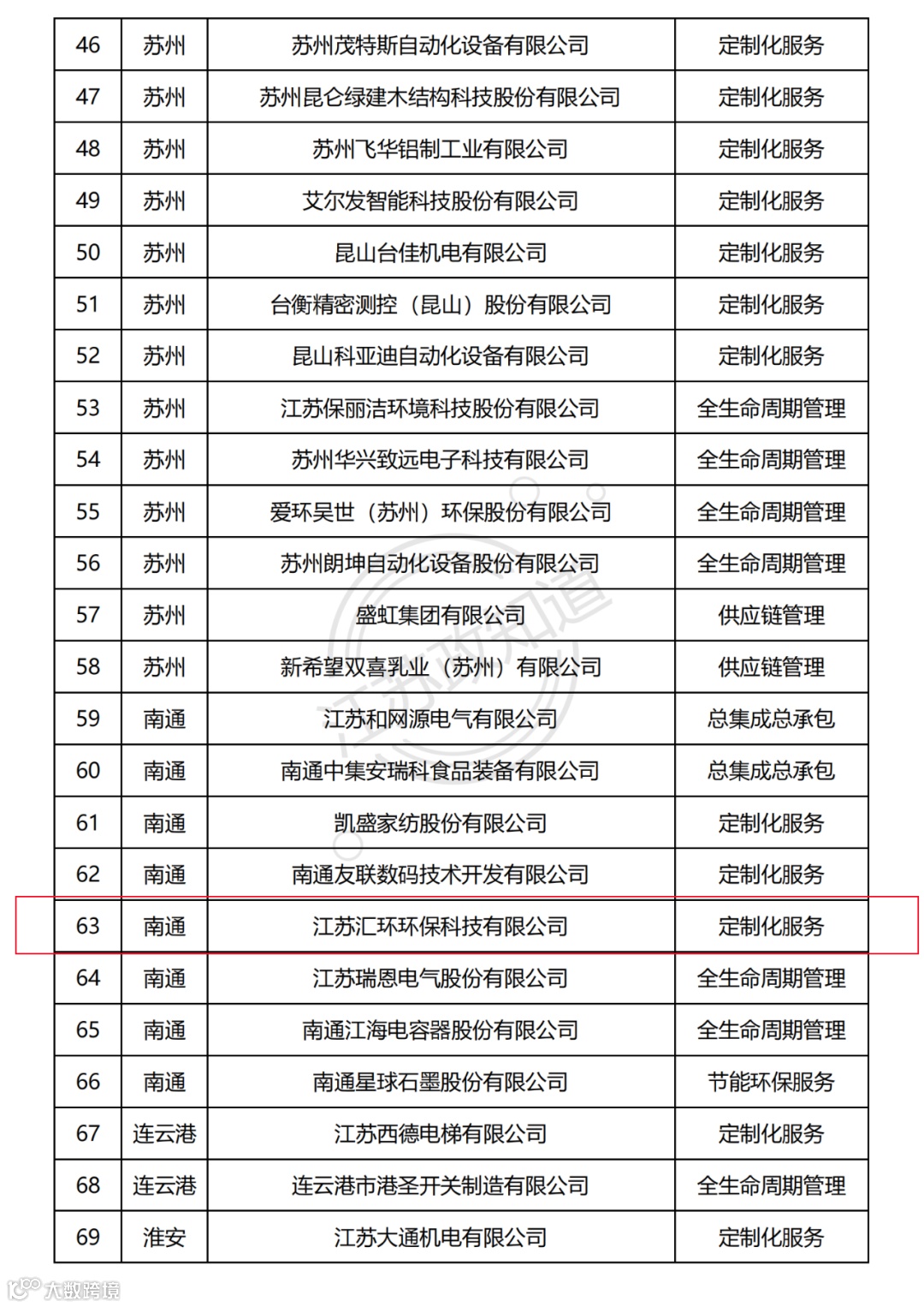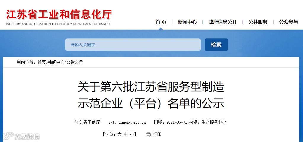 根据《关于推进服务型制造赋能制造业高质量发展的实施意见》(苏工信服务〔2020〕657号),为深入开展服务型制造“十百千”工程,进一步提高全省服务型制造整体发展水平,推动制造业企业向产业链两端延伸、向价值链高端攀升,江苏省工业和信息化厅组织开展第六批省级服务型制造示范遴选工作,于2021年6月1日公布第六批江苏省服务型制造示范企业(平台)名单,共有92家服务型制造示范企业和28个服务型制造示范平台,其中江苏汇环环保科技有限公司入选“第六批江苏省服务型制造示范企业—定制化服务”。