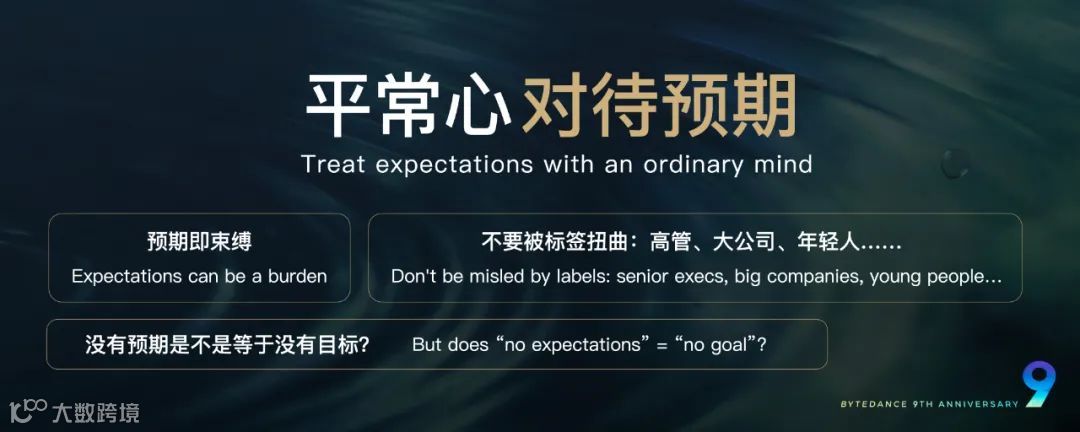 有一种说法是说,如果你把自己当做客体,就能有更平常心的状态,公司也是如此。现在外部有很多对于我们公司的归纳总结,我觉得是叫“字节成功学”吧,都很有问题。我尽量不看。我们不要反过来被外部评价定义和影响,应该基于自己提更高的标准。