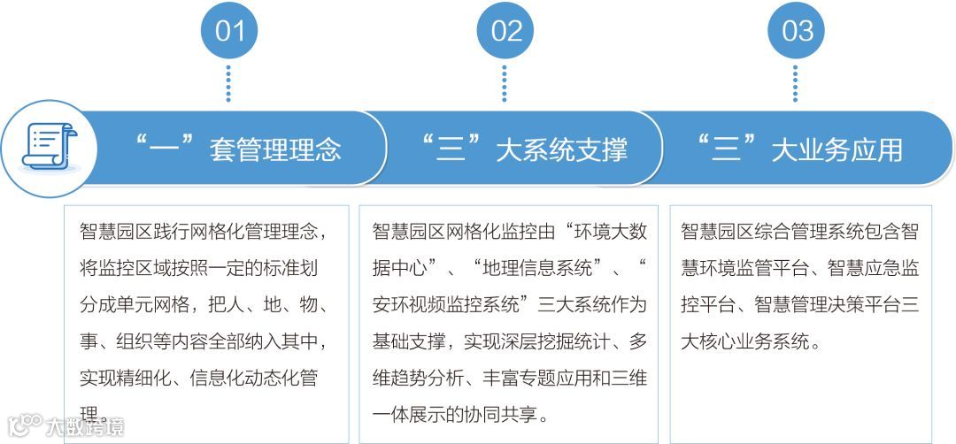 可以协助政府解决园区布局规划不合理,规划实施较随意,项目管理不完善,配套设施不健全,安全环保隐患大等问题,协助园区实现科学规划,合理布局;实现园区产业升级,提质增效;在管理过程中,为园区提供管理的全过程控制、科学调度、智能管理,提高园区资源利用,协助园区提升信息化水平和公共服务能力,以信息化应用提高园区环保安全水平。