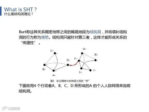 这是社会学家罗纳德·波特1992年提出的理论,“结构洞”是指在社会网络中,某些个体之间存在无直接联系或关系间断的现象,从网络整体来看,好像网络结构中出现了洞穴,这就是“结构洞”。