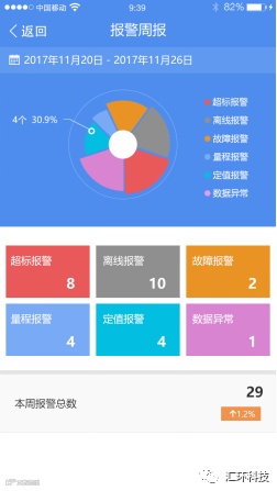 报警:以可视化的统计图表展示近7日的报警详细统计,可查询报警记录详情。