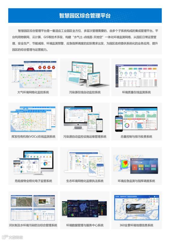 公司已建成并成熟运营环境大数据与智慧环保平台,集污染源全过程监控、生态环境监控预警、生态环境监察执法、河长制综合管理、总量管理与IC卡排污收费、环境设备运维管理、环境事故应急指挥、固废全程化管理、环境地理信息、环境数据中心等多个系统为一体,实现环保大数据管理的科学化、精准化、便捷化!