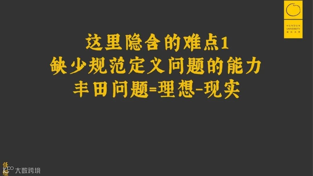 举个丰田的例子,丰田有一个定义自己问题的基本公式:问题=理想-现实。