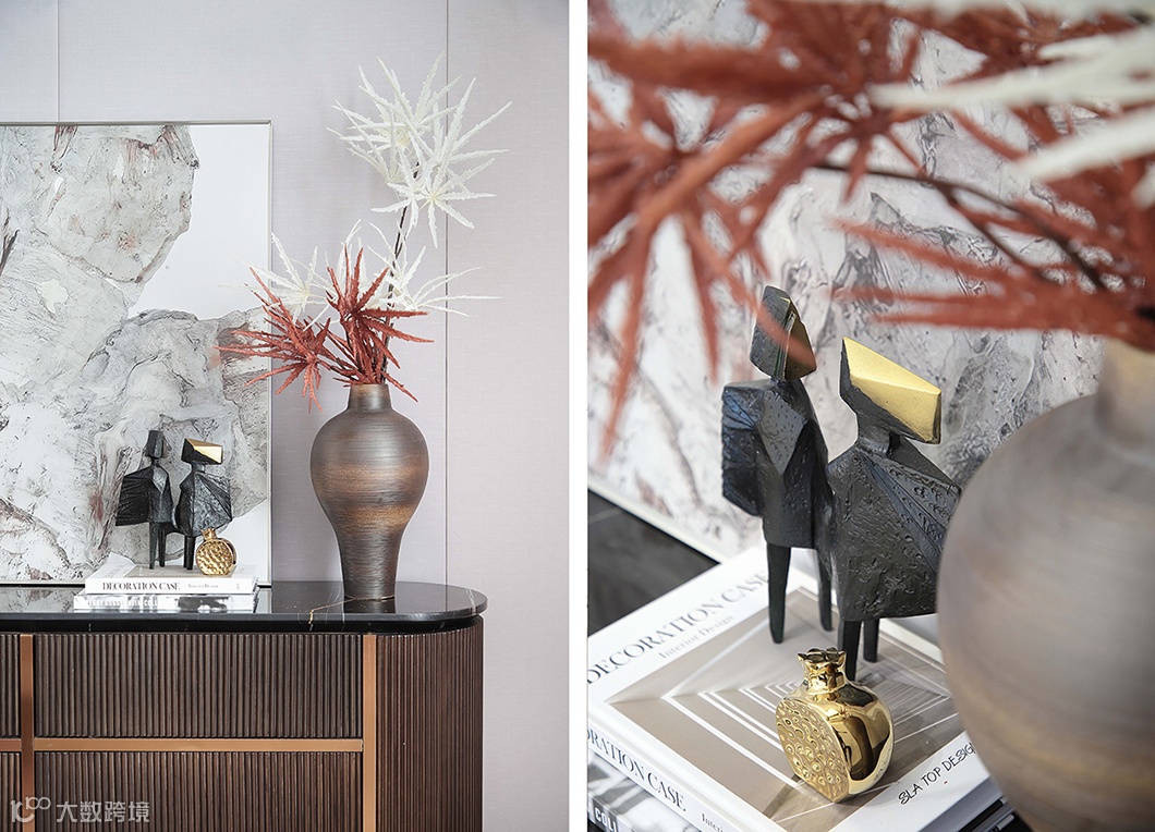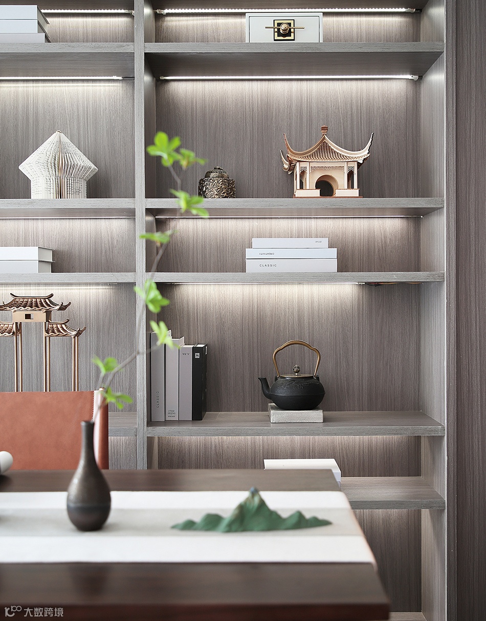 开放式的书房顺势而为,与客厅融为一体。当代感的艺术装饰 ,彰显居者的气质与品味。