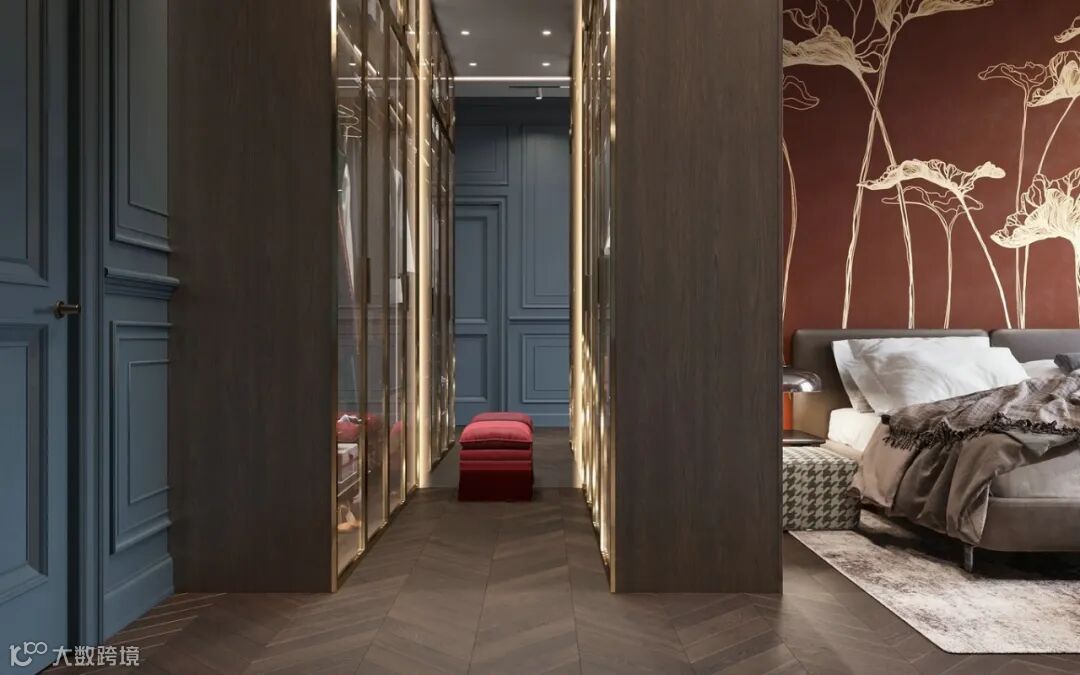 蓝灰色真的是百搭又高雅的颜色,搭配一点金,让空间更有张力!散发出一种成熟的安宁与平静感!