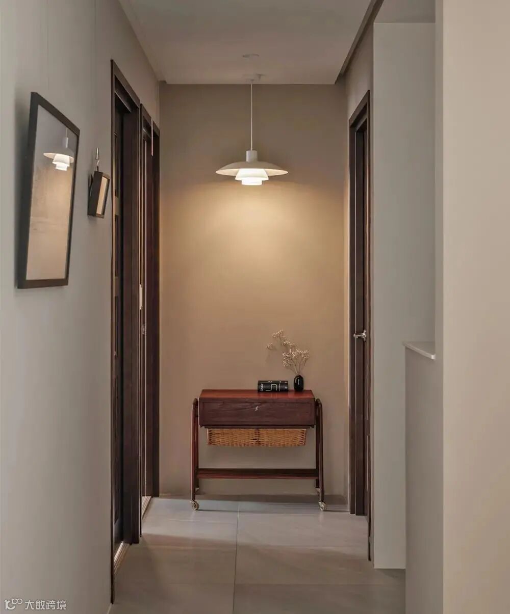 进入私领域,左侧壁面设置挂画轨道点缀艺文气息