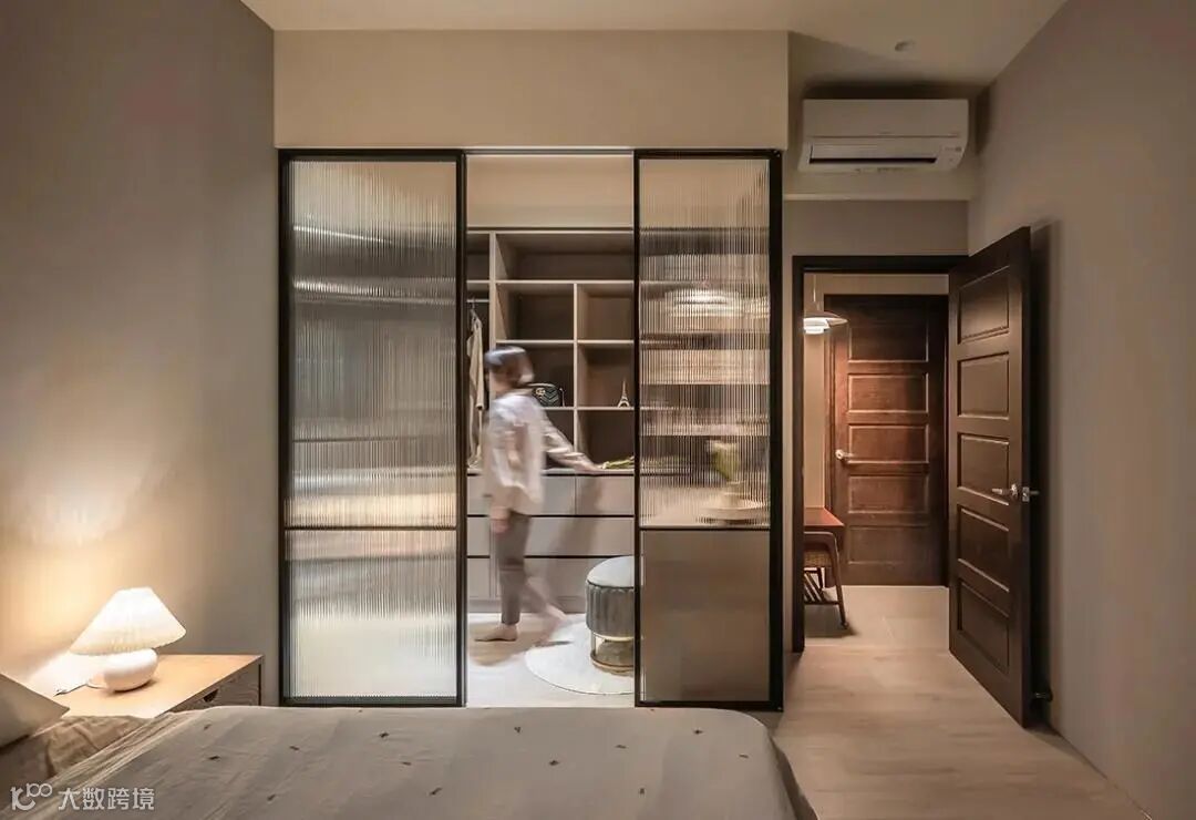 L型更衣室以条纹横拉门半穿透特性