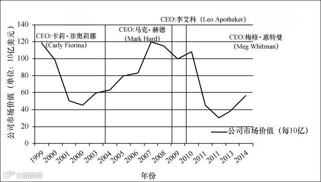 李艾科在任不到一年的时间内,让惠普的市值缩水竟达到300亿美元。当然,惠普那些常年遭受损失的股东们私下想着他们之前已经见过这种人心惶惶的情况了,准确来说已经见过三次了。惠普高层频繁变动,从菲奥莉娜任职到李艾科辞职的这十几年时间,惠普的市值缩水近2/3,从超过1 000亿美元到不足300亿,而对手苹果公司的市值由十几年前不到50亿美元——惠普当时市值的5%——增长到2012年1月的超过4 000亿美元,这是曾经的业界领头羊惠普市值的20倍,比整个希腊经济体的净值还多。