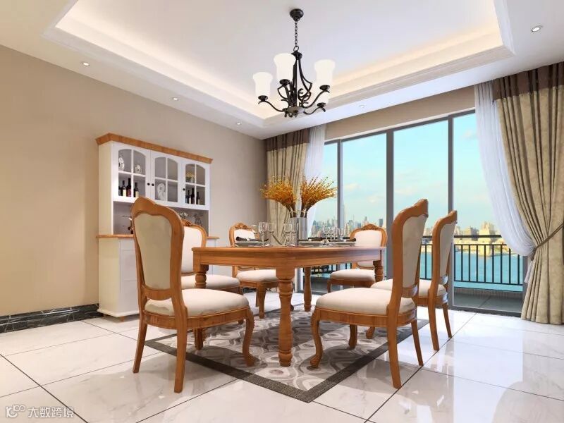 无论是餐厅还是书房都采用了美式风格中常见的新古典风格的家具。这种风格的家具,强调的是优雅的雕刻和舒适的设计。在保留了古典家具的色泽和质感的同时,又注意适应现代生活空间。