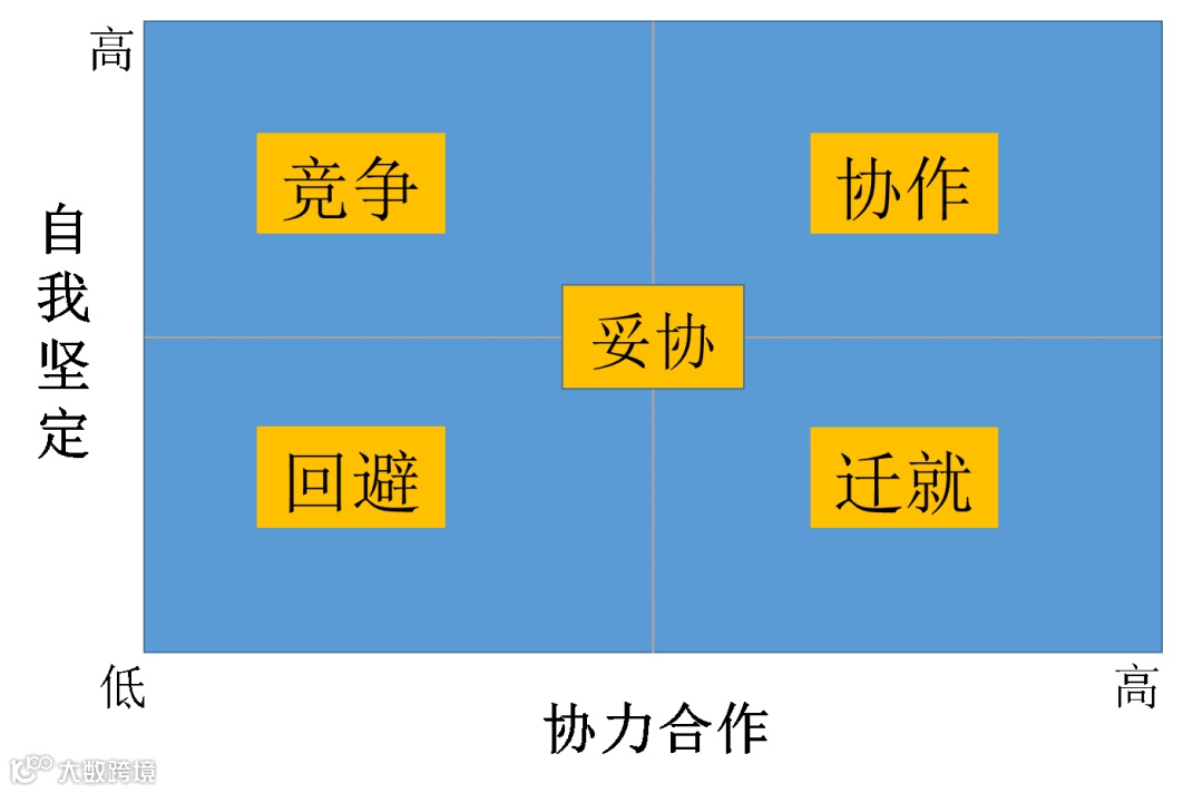 在五种冲突管理风格中,竞争和迁就都是一输一赢,回避是双输,妥协介于输赢之间,只有协作是双赢。