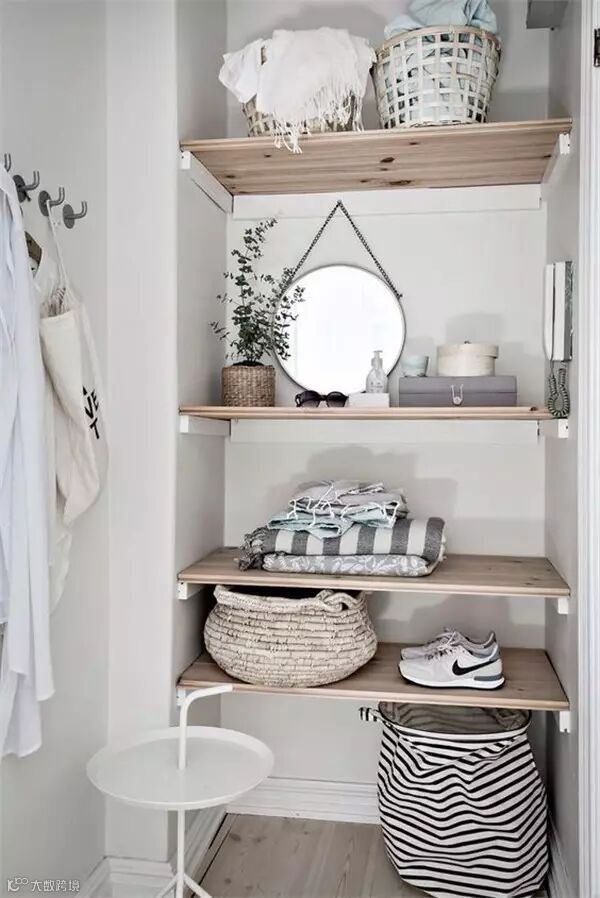 开放式架子可以增加小房间深度,
