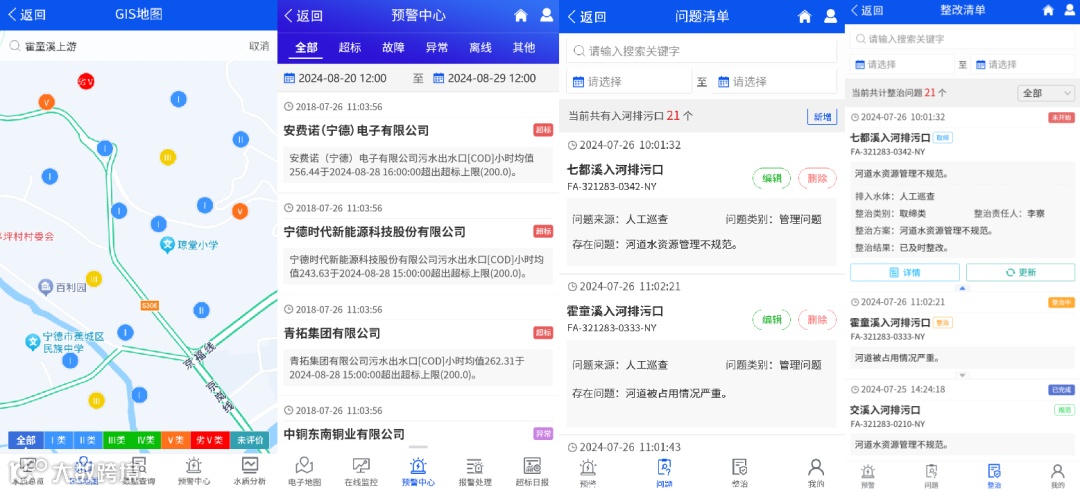 提供入河排污口移动端APP,集成了巡查整治、在线监测、污染预警、视频监控等应用,系统使用灵活方便、操作简单,提高现场工作效率。