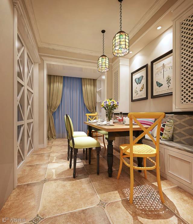 将玄关隔屏、玻璃以及装饰品三种元素融合在一起.达到可透光但又有实际收纳作用的目的。