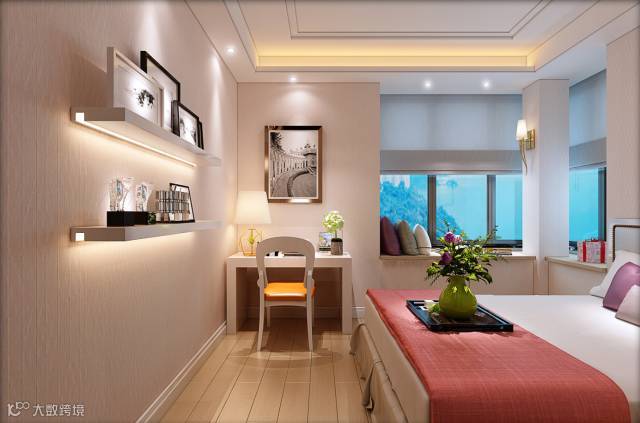 通过订制的书桌、床头柜来完成既符合空间尺度又能提供实用需求的收纳设计