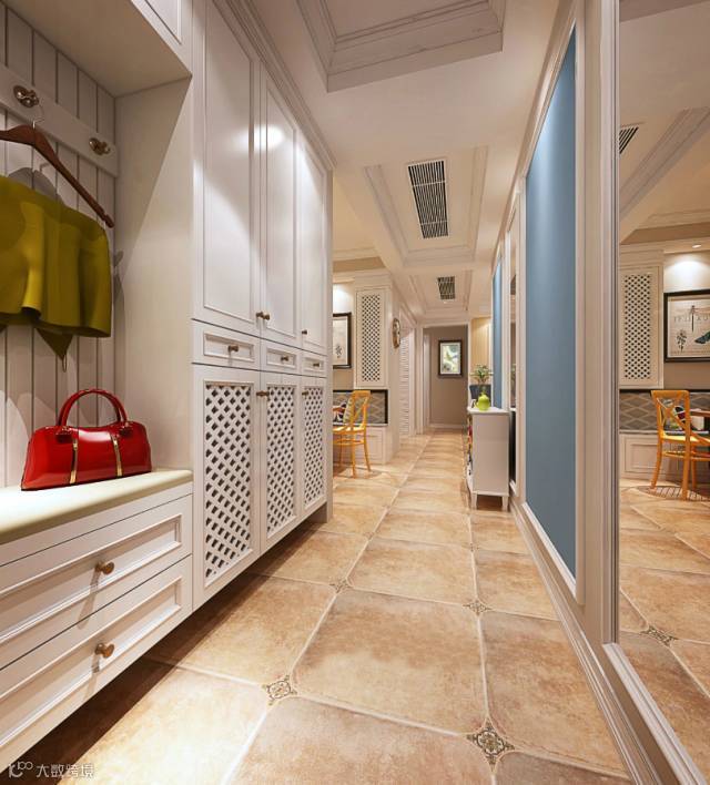 玄关的鞋柜不仅有封闭式收纳功能.上方平台也可置物或作为展示台,用来摆放装饰品或钥匙等随身的小物件。