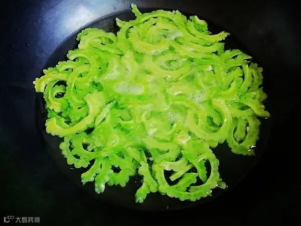 锅中放入水、苦瓜和少量盐,待烧开后小火再煮2-3分钟。