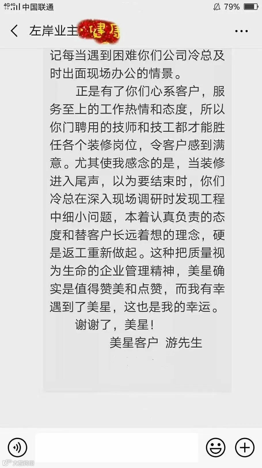 许多客户在装修完成后,纷纷送来锦旗和微信感谢信,