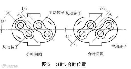 合叶为主动转子的啮合面向被动转子有靠近的趋势;分叶为主动转子的啮合面向被动转子有远离的趋势。若转子分、合叶间隙不合适,可调整齿套与轮毂或齿轮与轴的周向相对角度。