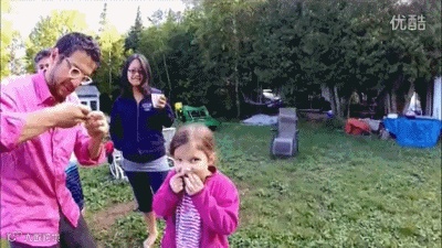 还是老爸手快!就看Biu的一下,牙就掉了~