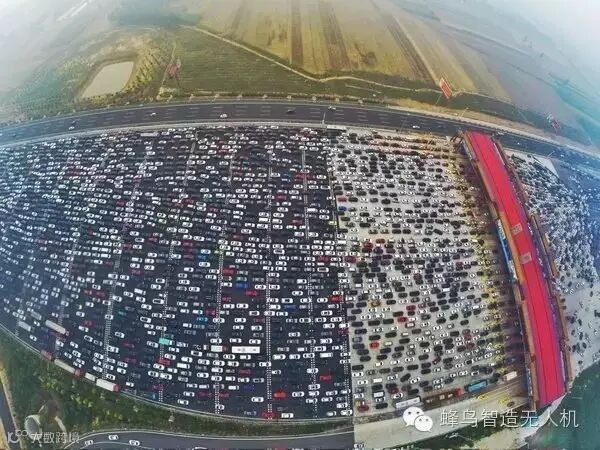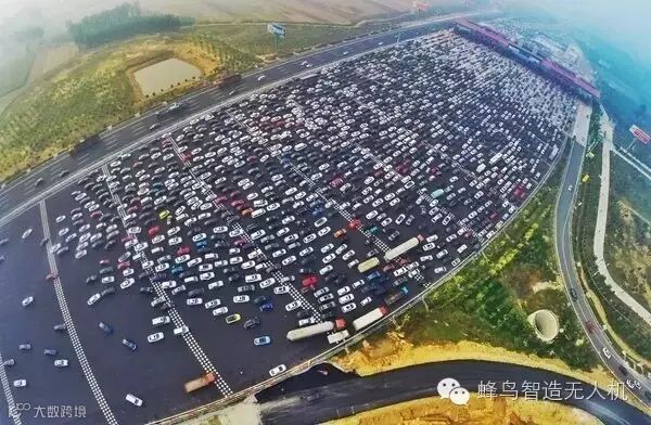 无人机实拍 国庆出行壮观车流 ,