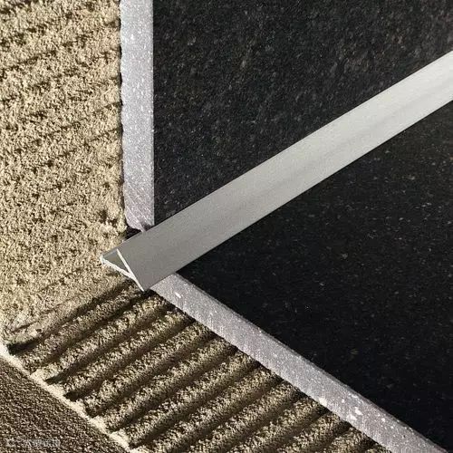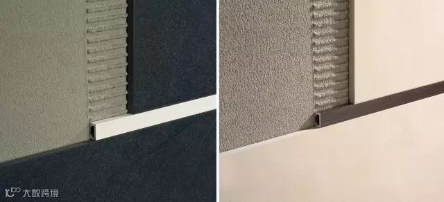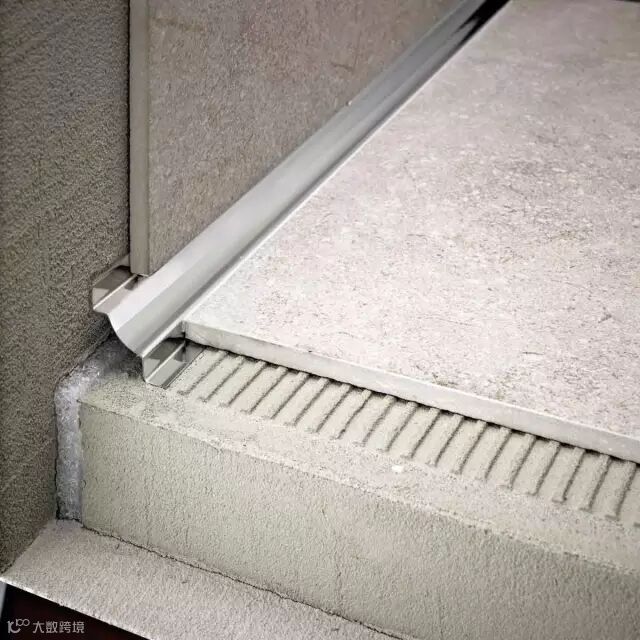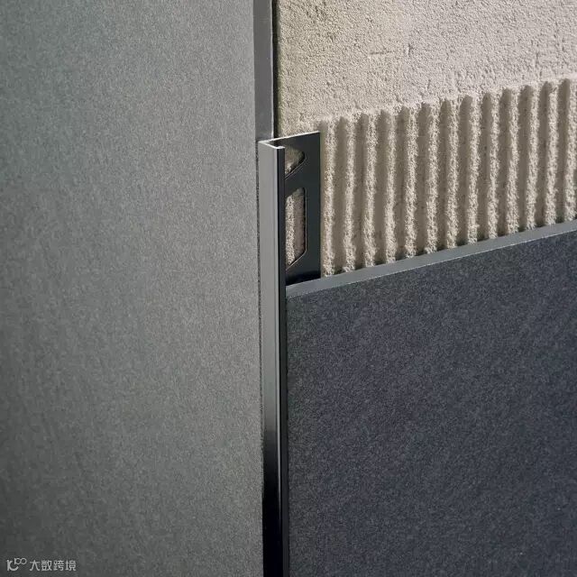 砖在阴角阳角收口时,通常采取45°角对拼的方式。这样不仅容易崩边、开裂,还存在一定的安全隐患。而圆润的金属收边条不仅增强了装饰效果,也一并消除了这些问题。