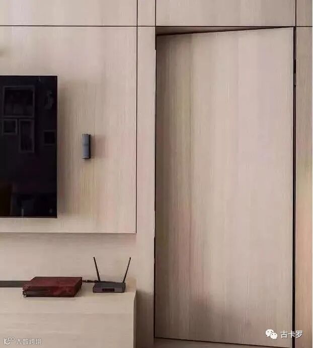▲平整利落的木饰面墙还可以用细线条勾勒层次,与隐形门完美融合,让空间更显精致大气。