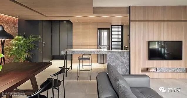 ▲木饰面也可以利用黑色几何块状装饰,凸显出空间的独特个性。