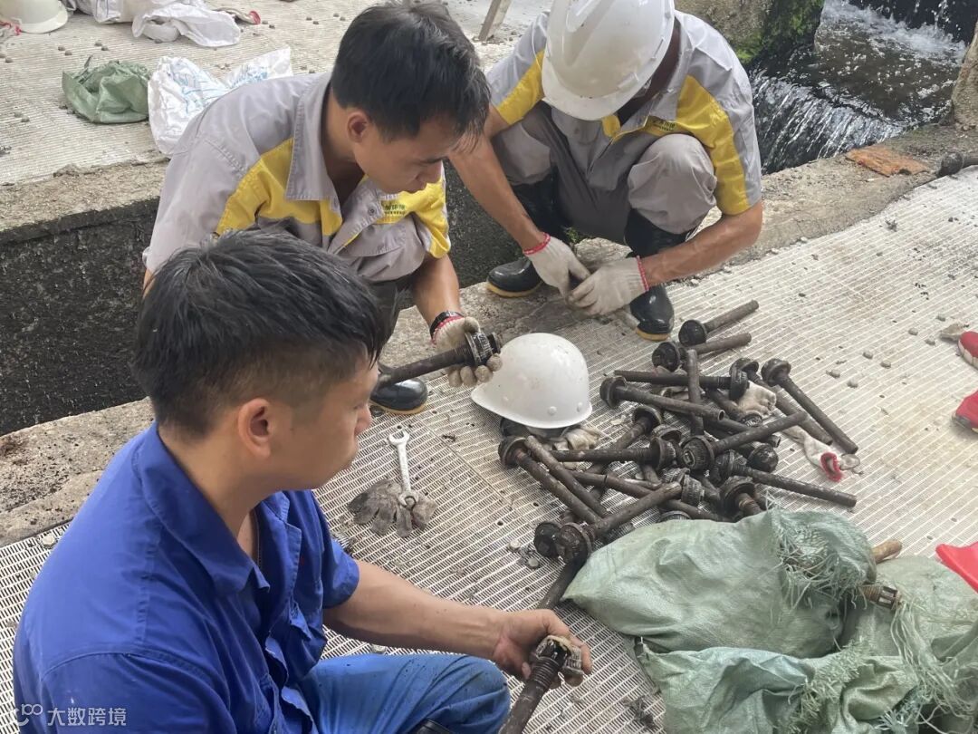 为保证故障滤板滤头拆装顺利,抢修人员组织有序、分工明确地切割故障滤板和拆卸滤头…… 一道道工序紧而不慌、快而不乱地进行,在闷热的滤池内形成一道亮丽的风景线。“我们把每一项工作明确时间,责任到人,确保每一步工序细致入微,没有差错。”抢修现场负责人惠州江北厂厂长曾瑞明说道。