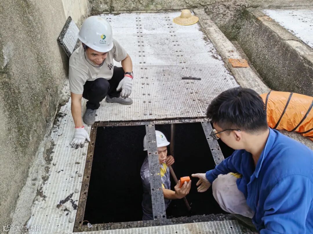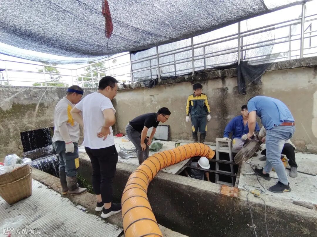 面对池外高温炙烤和池内湿热熏蒸的双重考验,党员先锋抢修队队员迅速进入抢修状态。为确保安全作业,厂区安全员黄明浩在每次作业前,先通风、再检测、后作业,以确认池内气体安全。同时,他不厌其烦地检查抢修队员们的个人安全防护措施,提醒安全作业规程。“安全作业无小事,我们宁愿事前多检查一遍,也要保证大家池内作业安全。”黄明浩说。