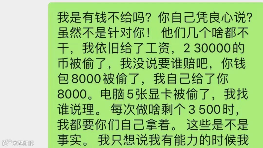 再讲讲创业,其实现在当老板也挺难的,最近员工找我讨薪,最后几个人我差了几个我认为关系不错的一个月左右薪水没支付,但是我在当老板时很大方,基本逢年过节都有买礼品,团建标准都是20000左右,大概应届生都是10000左右,而且因为工作疏忽导致损失了100多万,而且工作上导致的损失我都自己背负。现在因为差几千要去仲裁我。基本上现在也不叫哥不叫总,都是用你来称呼我。