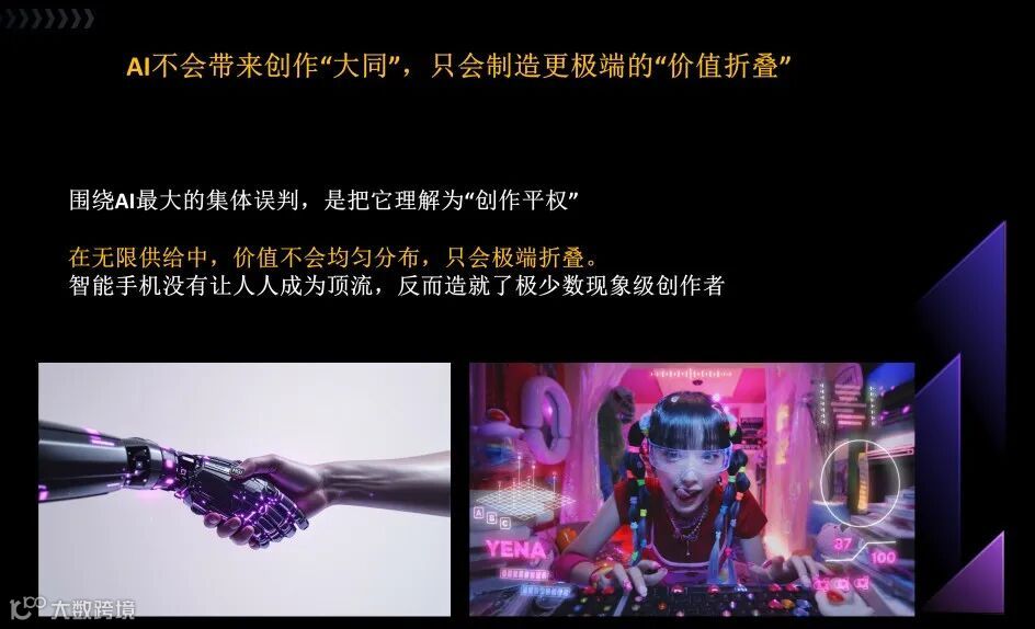所以,未来看似创作平权,实则并非如此。就像有了智能手机之后,并没有形成“人人是顶流”的情况,反而造就了极少数现象级的创造者。